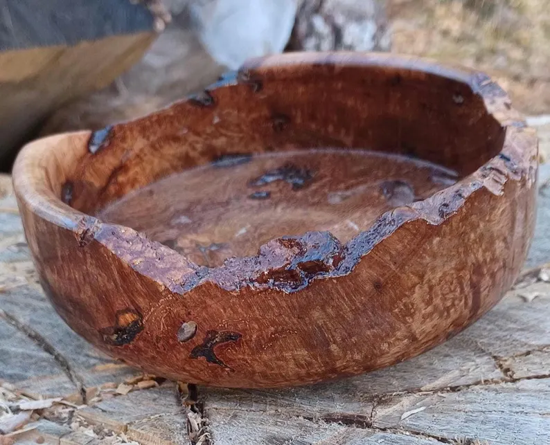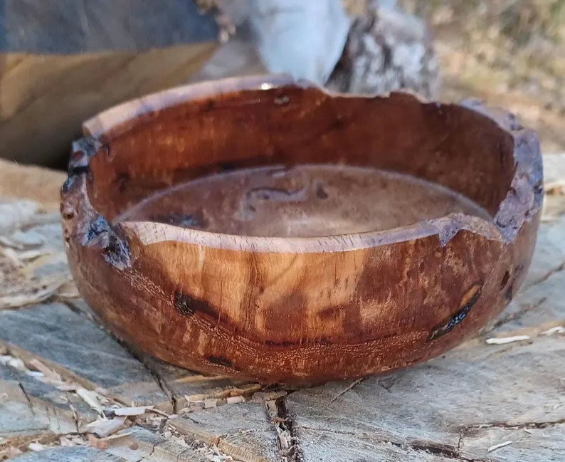 One of a kind Live Oak Burl bowl. Natural edge, sustainably harvested and hand carved. From Northern California out of the Shasta Cascade mountains.